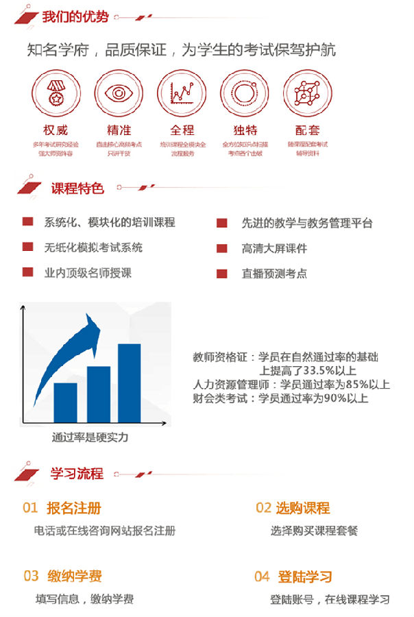 新春伊始,由华南师范大学与中国人民大学强强联手,合作推出的重点项目——“职业资格证在线培训”正式上线(网址:www.gdteachers.com)。该项目共包括教师资格证培训、人力资源管理师培训、“三笔一画”培训、会计职称证书培训、财务报表分析等多个取证类考试辅导培训。?xml:namespace> 项目利用先进的在线教学平台和无纸化模拟考试系统,支持学员随时随地报名缴费、自主选择套餐、个性化自主学习。通过邀请业内顶级名师授课,认真研究命题特点,项目能够精准把握命题思路,直击核心高频考点,有效提高学员考试的通过率。 (项目热线:020-85211741;咨询QQ:368943180)