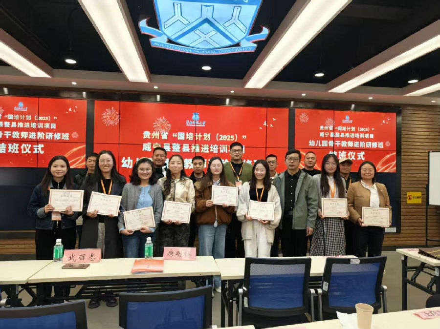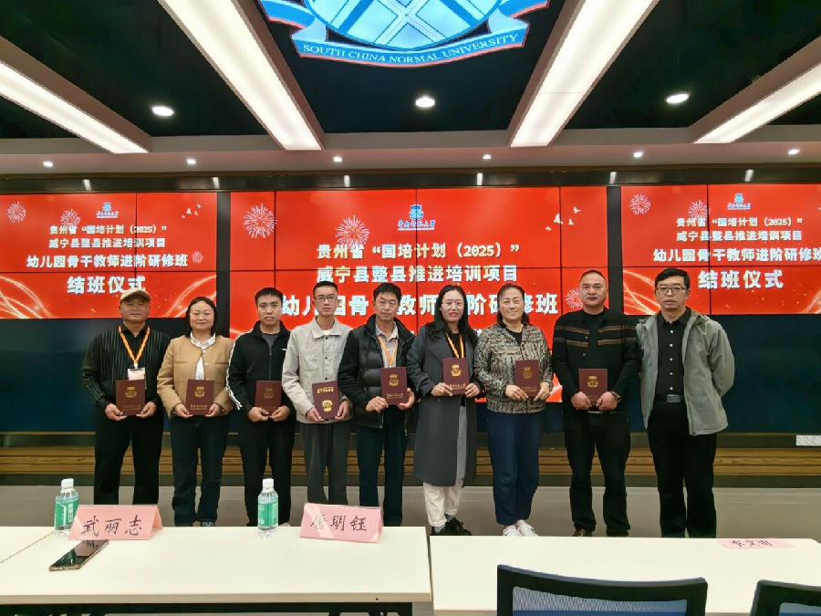 经过七天充实的学习与深入的交流,贵州省“国培计划(2025)”威宁县整县推进培训项目德育专题研修班于11月22日在华南师范大学顺利结班。出席此次结业仪式的人员有华南师范大学继续教育学院副院长武丽志、威宁自治县教师发展中心唐明钰老师以及及全体研修班学员。