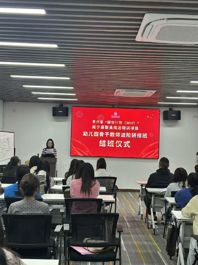 近日,由华南师范大学继续教育学院承办的贵州省“国培计划(2025)”威宁县整县推进培训项目幼儿园骨干教师进阶研修班结业仪式顺利举行。此举标志着为期一段时间的集中培训圆满落幕,来自威宁县的幼儿园骨干教师圆满完成学习任务,满载而归。继续教育学院发展规划与培训部部长雷丹、威宁自治县学生发展服务中心副主任宁磊和全体学员参加结业仪式。