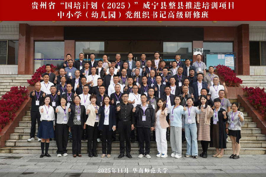 2025年11月13日至19日,贵州省“国培计划(2025)”威宁县整县推进培训项目中小学(幼儿园)党组织书记高级研修班在华南师范大学顺利举行。67名来自威宁县中小(幼儿园)的党组织书记及副书记齐聚一堂,共同参加了为期7天的集中学习。