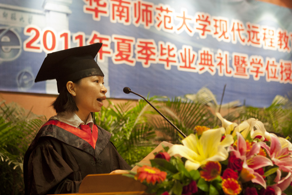 而我,今天能够在两年半的时间里拿到学位,按时毕业,这其中的艰难曲折只有我和班主任赖老师清楚!应该说,我给老师添了不少麻烦。学位对于我来说,具有举足轻重的作用!要想顺利拿到学位,除了通过主干科考试、学位英语考试之外,论文还要八十分以上。还记得去年,当我看到论文才七十八分时,我傻眼了!一时的无助与惶惑冲击着我的内心。人到中年,事业的危机感越来越大。岁月不饶人啊!如果重修论文,我将要延迟一个学期毕业,在这半年里,无法预料单位的变数。当我把自己的实际情况告诉班主任后,得到的是来自老师的安慰和鼓励。